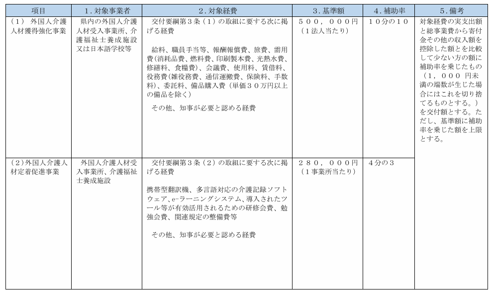 - 外国人介護人材定着促進事業(県内の介護事業所、介護福祉士養成施設)