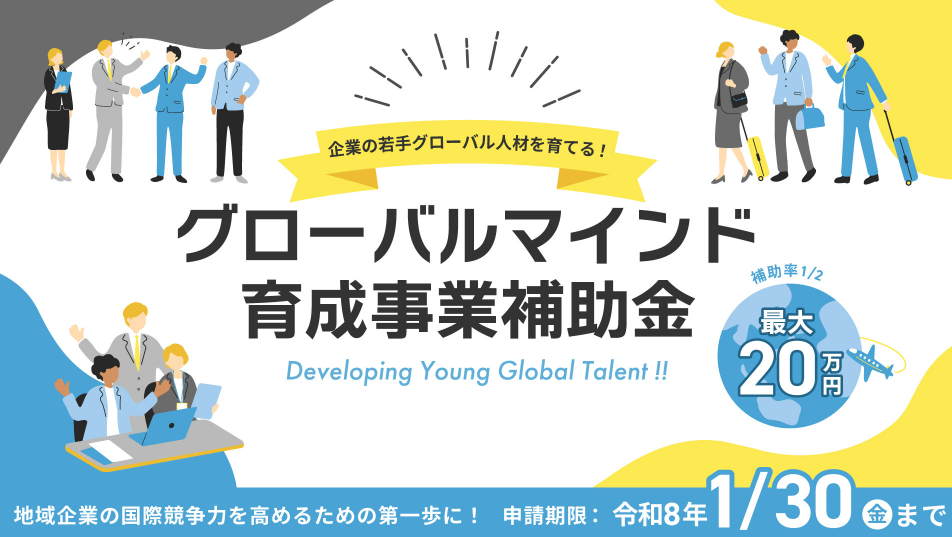 仙台市産業振興事業団の「グローバルマインド育成事業補助金」は、若手社員に海外経験を積ませたい、国際ビジネスに挑戦したい、定着率を高めたいと考える地域企業にとって絶好のチャンスです。ぜひこの制度を活用し、未来のグローバル人材を育成しましょう!