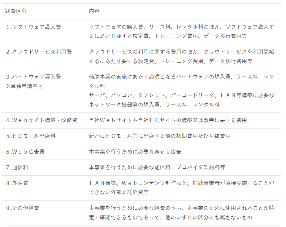 ※パソコン・タブレット等の汎用性の高い機器類はハードウェア導入費のみでの申請はできません。