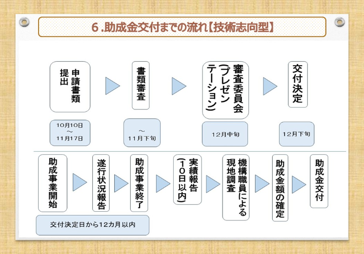 技術志向型の審査では、単なる製品アイデアや試作段階の取り組みにとどまらず、事業化に向けた具体的な計画性や、産学官との連携体制、さらに知的財産や新規技術としての成長可能性が重視されます。地域資源を活かしつつ、全国・世界へ展開できる可能性を持つ事業であるかどうかが、採否の大きな分かれ目となるでしょう。