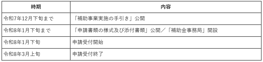 令和8年1月下旬から3月上旬までの申請受付を予定しています。募集の詳細については、宮城県ウェブサイト、もしくは社会保険労務士法人ブレインズのホームページで情報配信します。