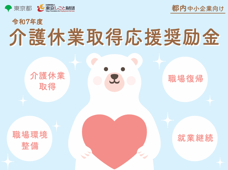 本奨励金は、東京都と(公財)東京しごと財団が連携し、介護休業を取得しやすい職場づくりと就業継続を進める都内中小企業を支援する制度です。単に「休ませたら支給」ではなく、法を上回る制度整備と原職復帰後の継続雇用までを一体で評価する点に特徴があります。対象となるのは、都内で事業を営み、常時雇用する従業員が2人以上かつ6か月以上継続雇用している中小企業等(従業員300人以下)です。対象従業員は、都内勤務の雇用保険被保険者で、合計15日以上の介護休業(有給の介護休暇を含む)を取得し、原職復帰後3か月以上継続して雇用されていることが求められます。