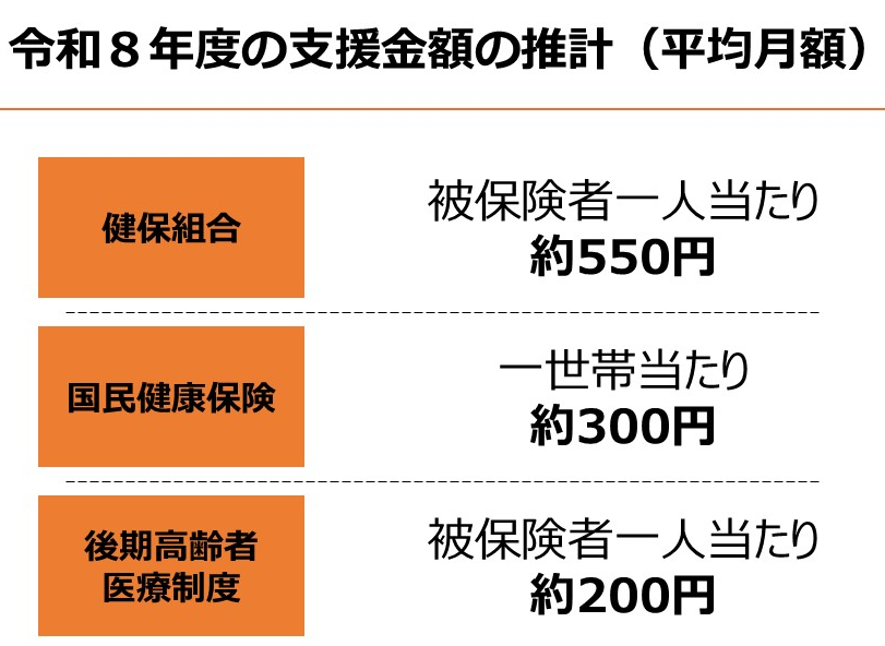 この制度は新しい税金ではありません。所得税や住民税が増えるわけでもありません。位置づけは明確で、公的医療保険制度に新たに上乗せされる拠出金です。協会けんぽ、健康保険組合、共済、国民健康保険など、すべての公的医療保険に横断的に組み込まれます。つまり、健康保険に加入している以上、
