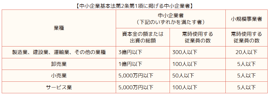 - 発行済株式の総数又は出資価格の総額を①~③に該当する中小企業者が所有している中小企業者等