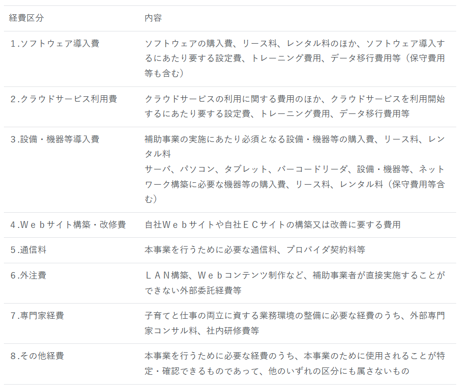 ※パソコン・タブレット等の汎用性の高い機器類は設備・機器等導入費だけでの申請はできません。必ず、ソフトウェア導入費やクラウドサービス利用費等と一緒に申請する必要があります。